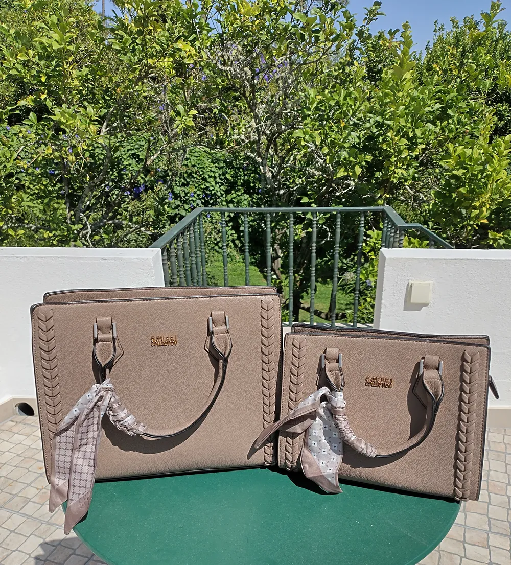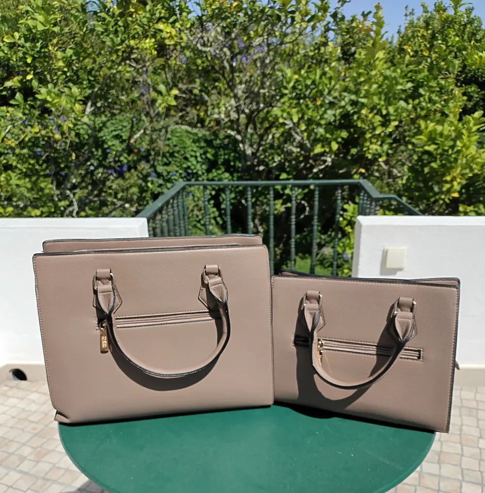 Duas Malas em Uma em Taupe Coveri Collection Ambas com Tiracolo e Ambas com Fecho Interior