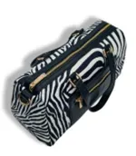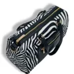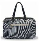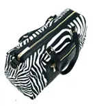Mala bowling modelo em animal print. Duas alças de mão mais alça a tiracolo. Malote medio grande com interior amplo e com fecho de correr. Tecido impermeável