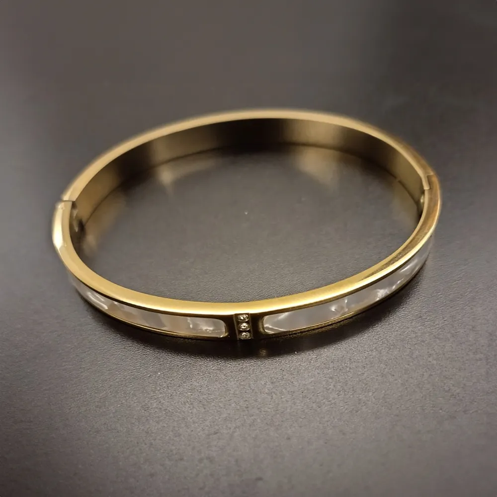 Pulseira aço inoxidável, à prova d’água, anti-manchas, com madre pérola